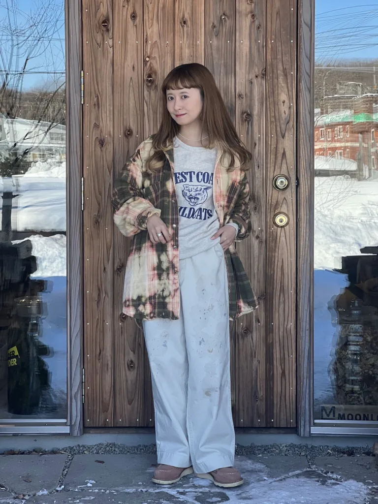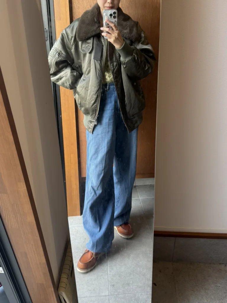 クリームカラーなので、ブラウン系のアイテムや、色落ちしたデニムと合わせるのが特に好きです。