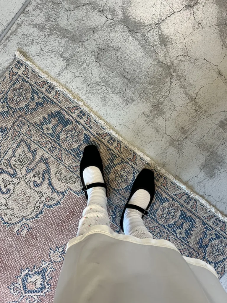 少しのヒールで歩きやすく、ベロア素材なのもさりげない上品で、100点満点のシューズです!◎