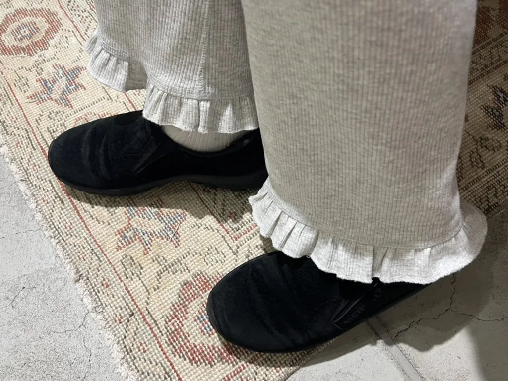 また、パンツは裾のさりげないフリルが上品なうえに、