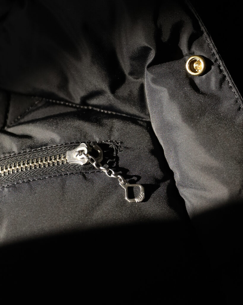 さらに、ボタン台座のゴールドとジッパーのシルバーの組み合わせには、
