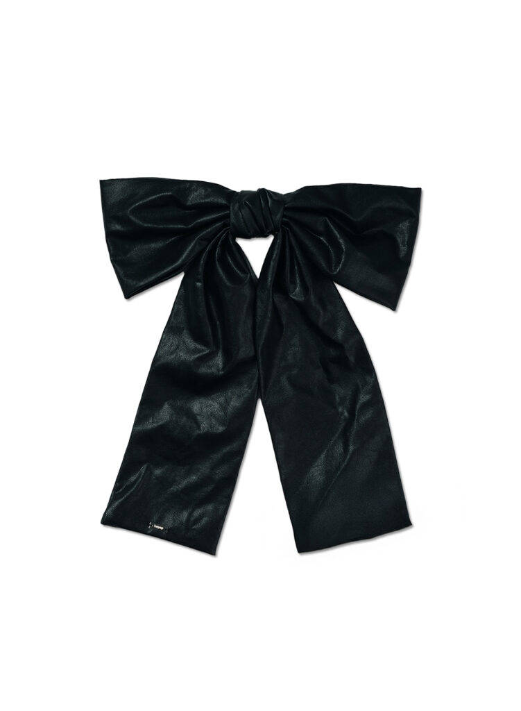 マットなフェイクレザーが光を控えめに受け止め、ひとつ結びやまとめ髪に添えるだけで、コーデ全体がぐっと洗練された印象に仕上がります。