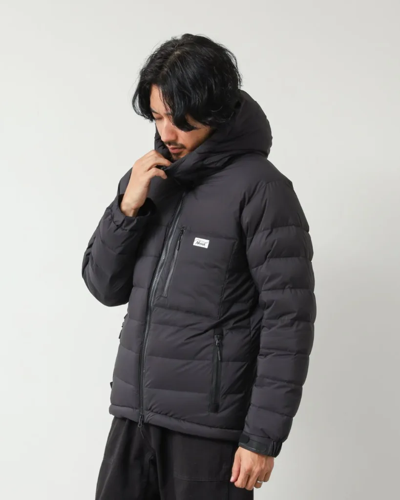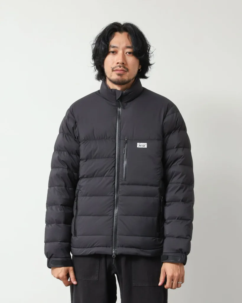 ダウンパックのステッチ幅を細かくすることで、シルエットはすっきりとした印象に仕上げられています。ダウン特有のボリューム感を抑えつつ、必要な保温力を確保しているため、着ぶくれしにくく、街中でも自然に馴染みます。アウトドア寄りになりすぎない見た目は、日常着としての使いやすさを高めています。