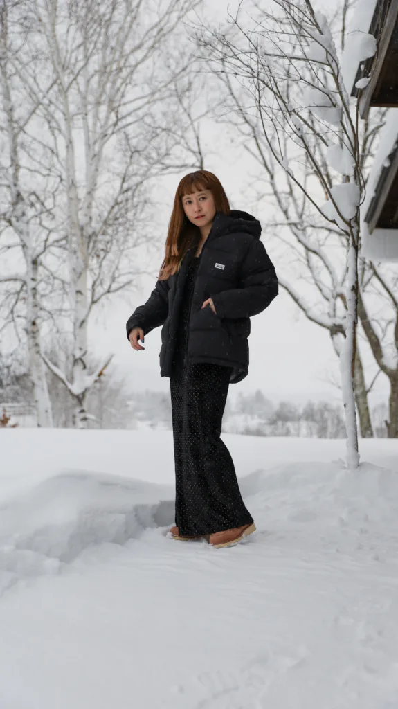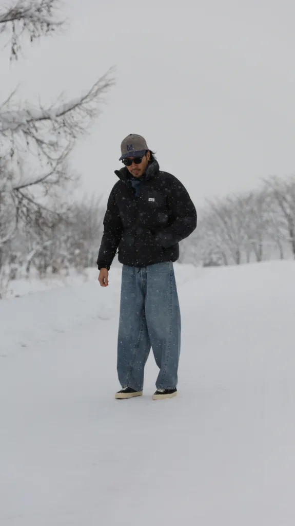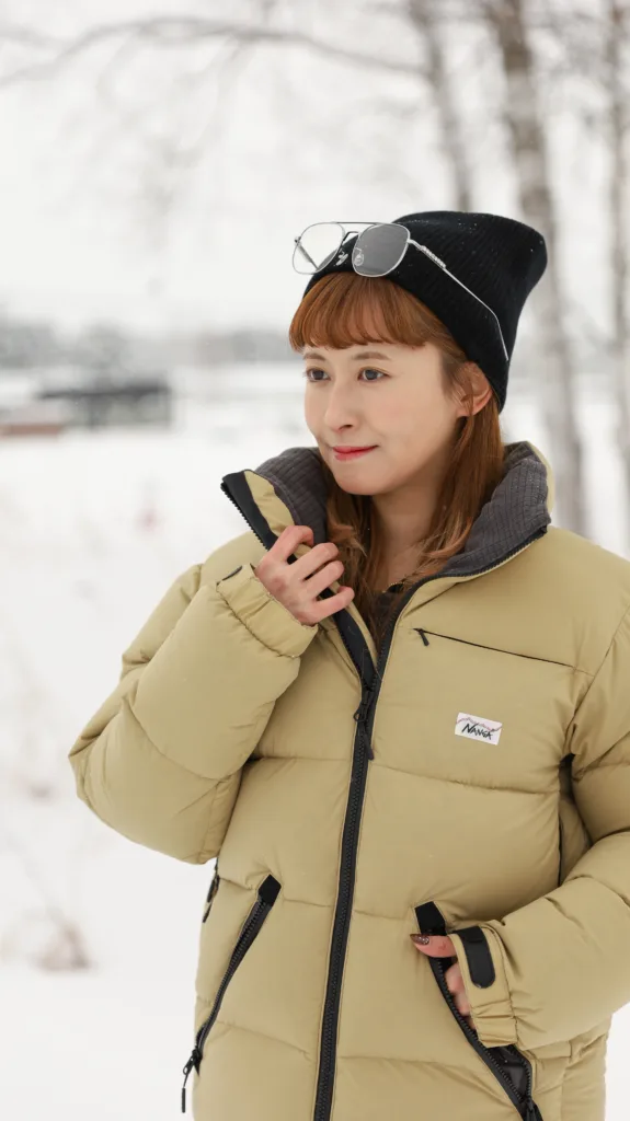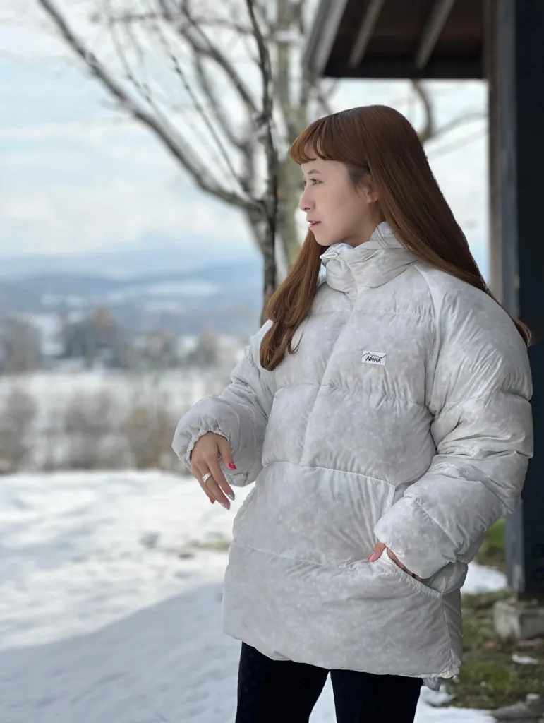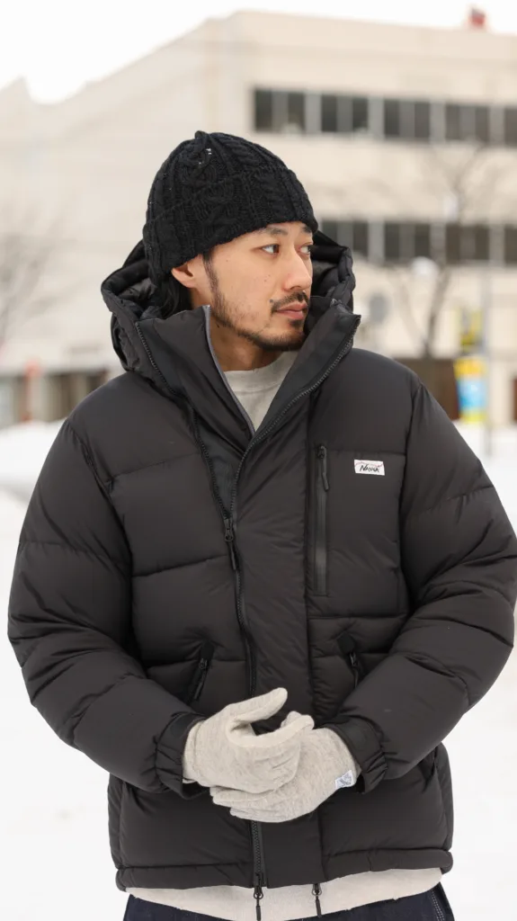 この加工により、雨や雪、湿気の影響を受けにくく、濡れた環境でも羽毛が水を吸い込みにくくなります。結果としてロフトが保たれ、暖かさが安定しやすい状態を維持できます。特に、降雪や湿度の影響を受けやすい北海道の冬では、UDDの効果を体感できる場面が多く、NANGA WHITE LABELの着用感を支える重要な要素となっています。